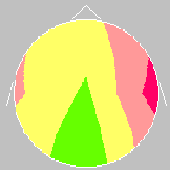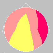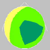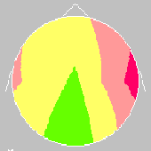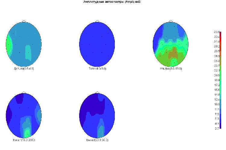 Получается, что это состояние явно отличается от классических трансов (гипнотических, например), где идет  значительное  повышение  медленных  подкорковых  ритмов.  На  рис. 5.2  показаны  карты спектрального анализа ЭЭГ до и после игры. До игры максимальный показатель 4.3, после игры - 9.8. Повышение соотношения корковых ритмов более чем в 2 раза!