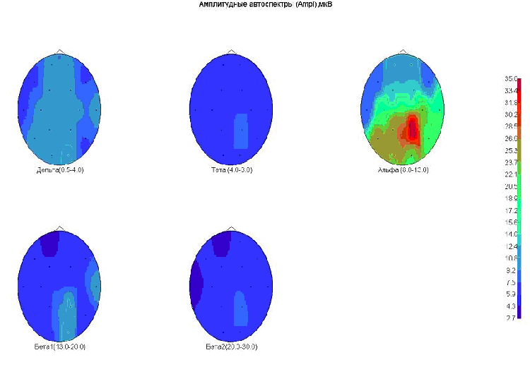 После игры наблюдается повышение мощности альфа ритма по-прежнему преимущественно в правом полушарии, показатели асимметрии меняются незначительно, хотя наибольшая представленность альфа ритма становится "более  размазанной",  появляется  красное  пятно  в  спектре  альфа  ритма  и  в затылочных областях левого полушария. Но при этом сильно возрастает представленность корковых ритмов (альфа и бэта) по сравнению с подкорковыми (тета и дельта).