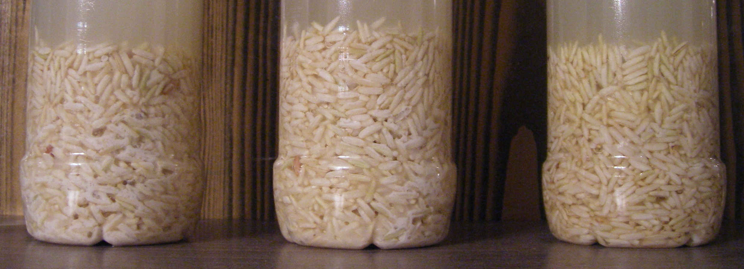 Рис в контрольной бутылке начал покрываться белой слизью, в принимающей негатив бутылке тоже, но несколько меньше, а в принимающей позитив... - остался чистым!